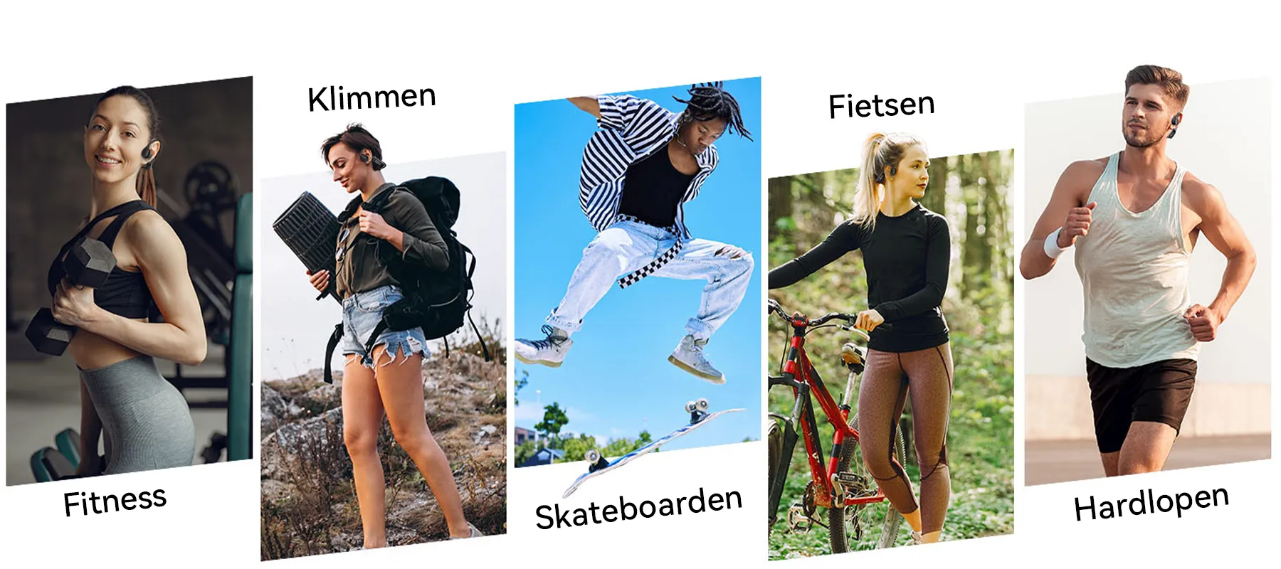 Zeg vaarwel tegen het benauwde gevoel en de zweetophoping van traditionele hoofdtelefoons. Met onze innovatieve technologie geniet je van geweldige muziek terwijl je het omringende verkeer, stemmen en zelfs begroetingen duidelijk hoort. Je hoeft je muziek niet te pauzeren — je blijft te allen tijde alert, wat de risico's bij buitenactiviteiten aanzienlijk vermindert.