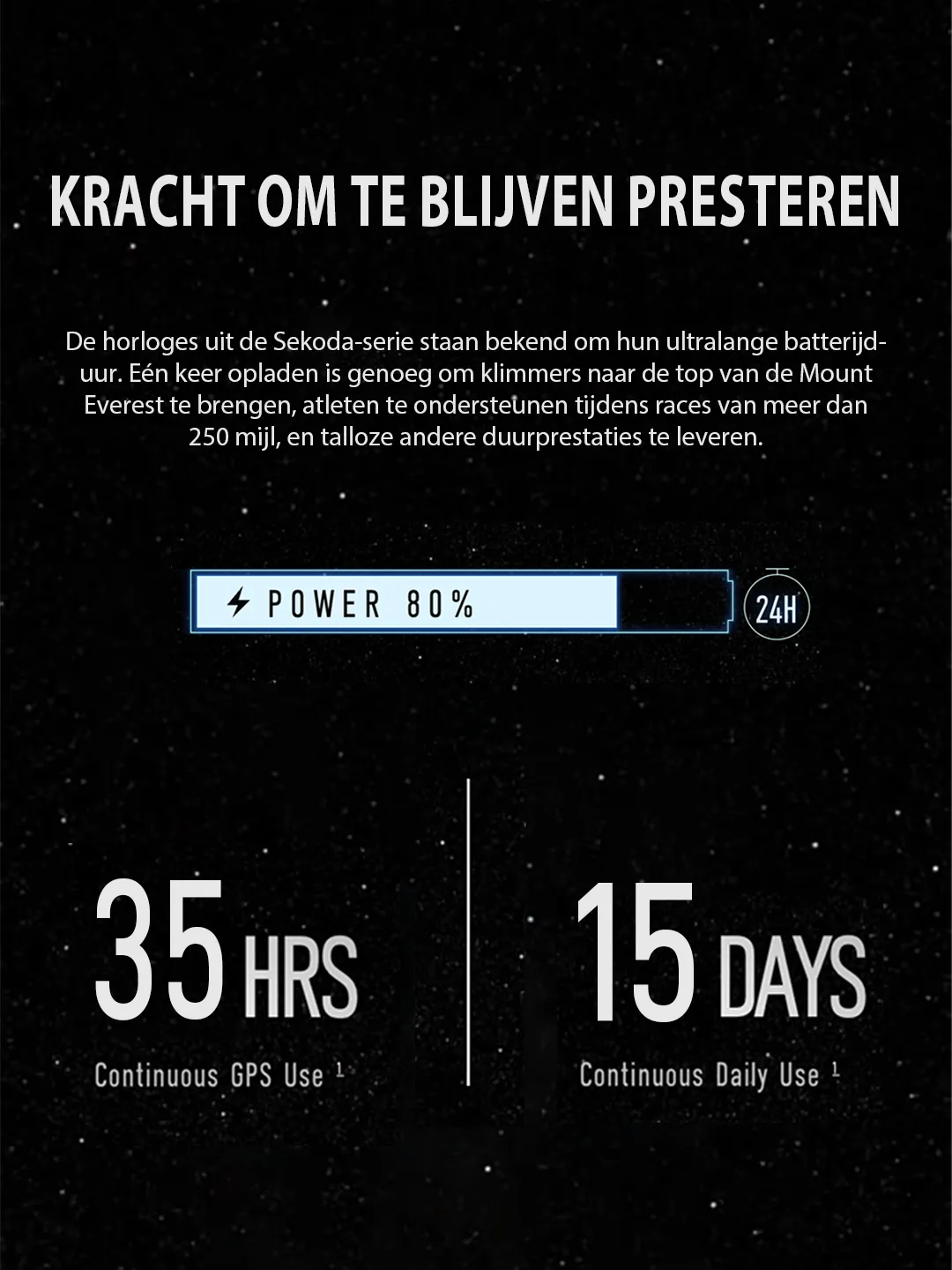 Gedreven door persoonlijke ervaring, ontwierp Liam een horloge voor uiterst nauwkeurige GPS, langdurige stroom en uitgebreide tracking. Hij testte het meedogenloos op uitdagende paden en zorgde voor betrouwbare prestaties die elke avonturier kracht geven. Vandaag de dag staat Sekoda voor technologie ontworpen door avonturiers, voor avonturiers – prestaties eerst, functies die er echt toe doen op de tweede plaats.