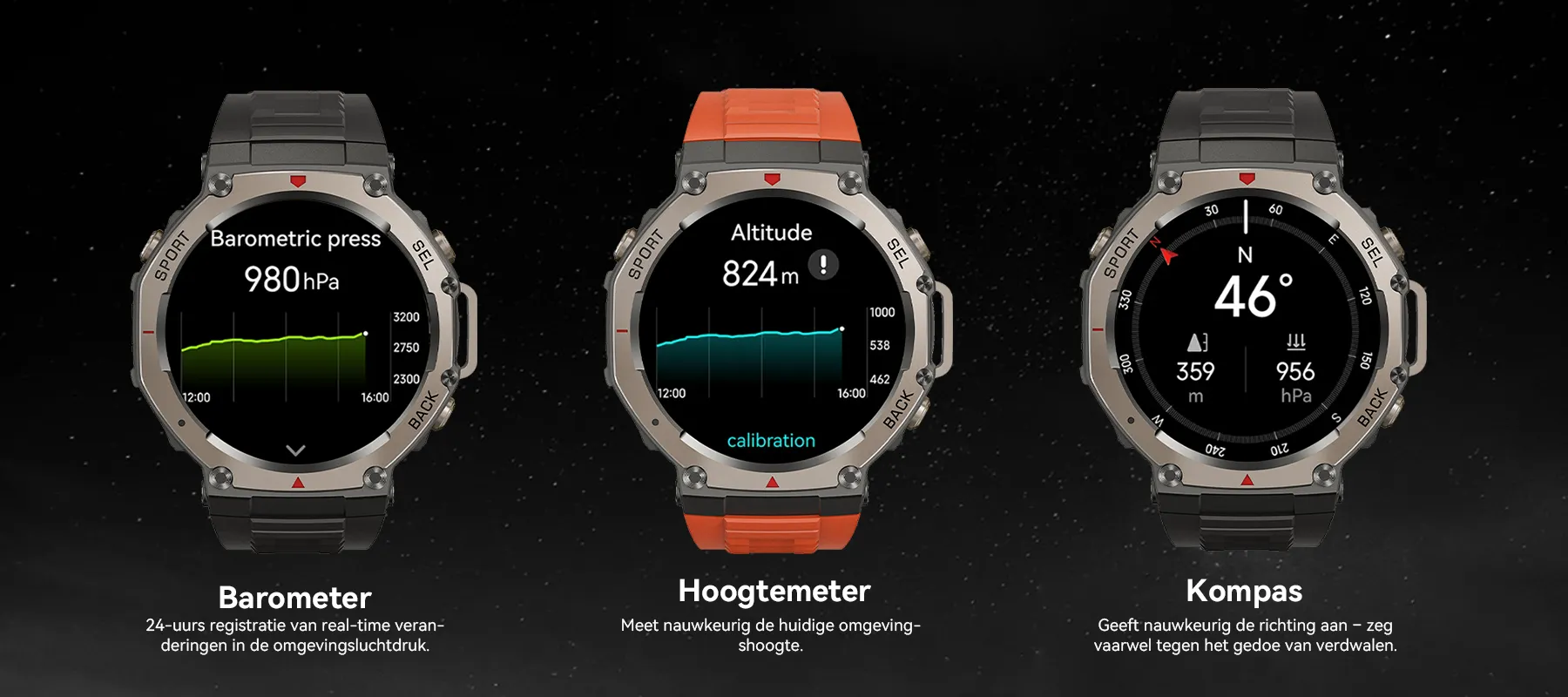 - 24/7 Gezondheidsbewaker: Realtime monitoring van hartslag, bloedzuurstof en stress voor veiligheidswaarschuwingen.