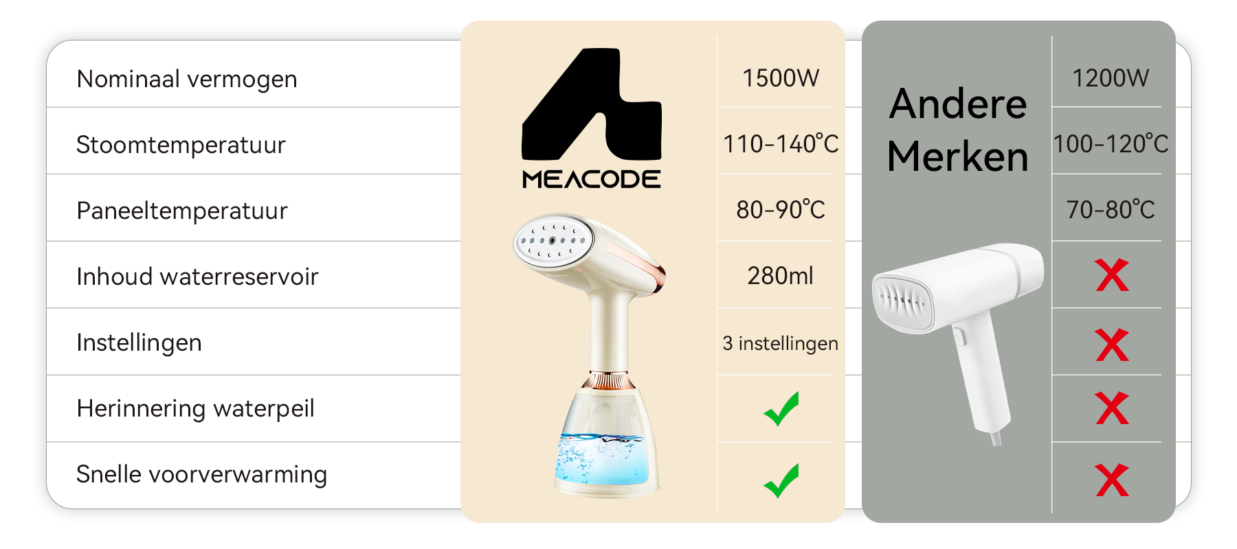 - 15 seconden snelle opwarming: Nooit meer wachten. De stoom is klaar in slechts 15 seconden voor onmiddellijk gebruik.