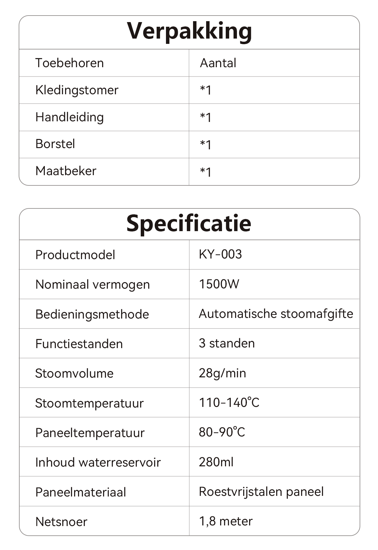 - 9,5 oz grote watertank: Strijk meerdere kledingstukken met één vulling, zodat je niet constant hoeft bij te vullen.