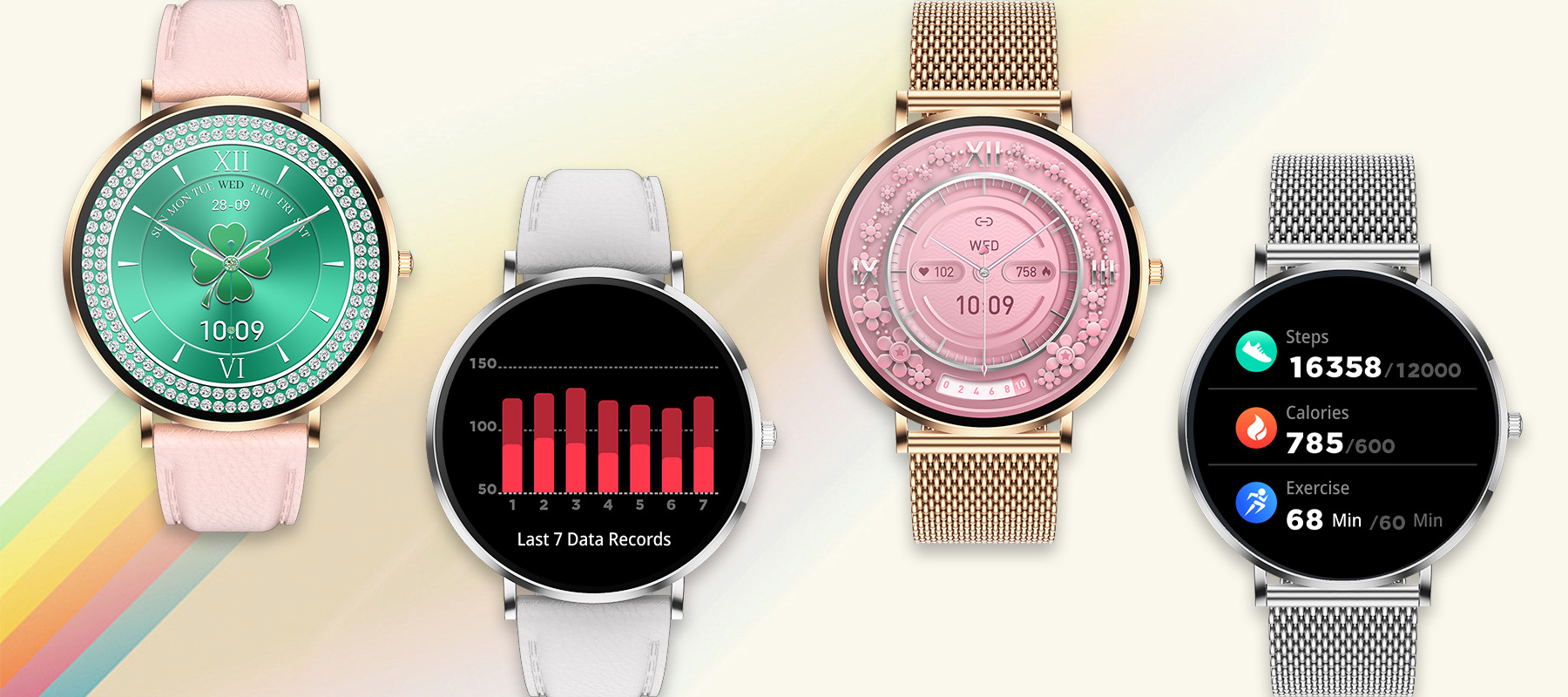 - Speciaal voor de gezondheid van vrouwen: Een doordachte functie voor het bijhouden van de cyclus geeft je een duidelijk, voorspelbaar overzicht van je lichaam.
